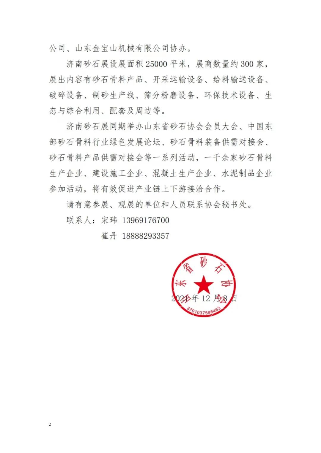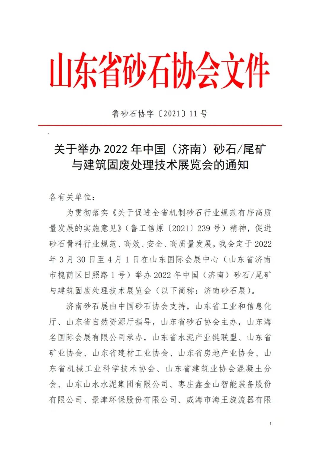 关于举办2022年中国(济南)砂石/尾矿与建筑固废处理技术展览会的通知