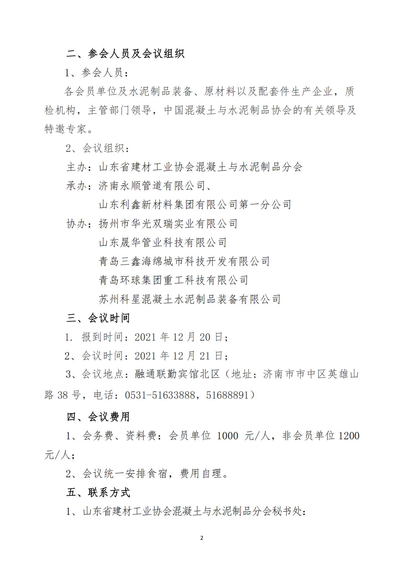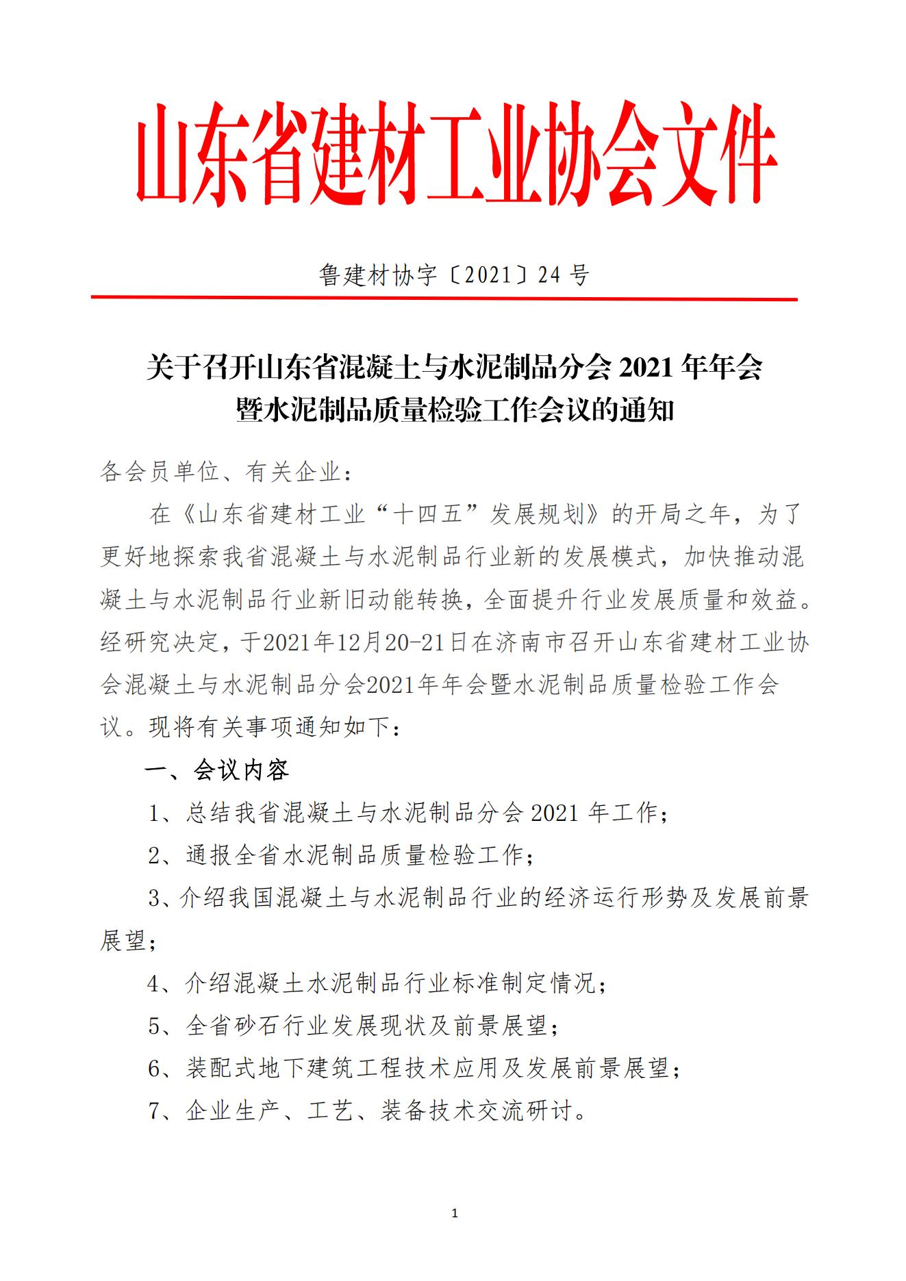 关于召开山东省混凝土与水泥制品分会2021年年会暨水泥制品质量检验工作会议的通知