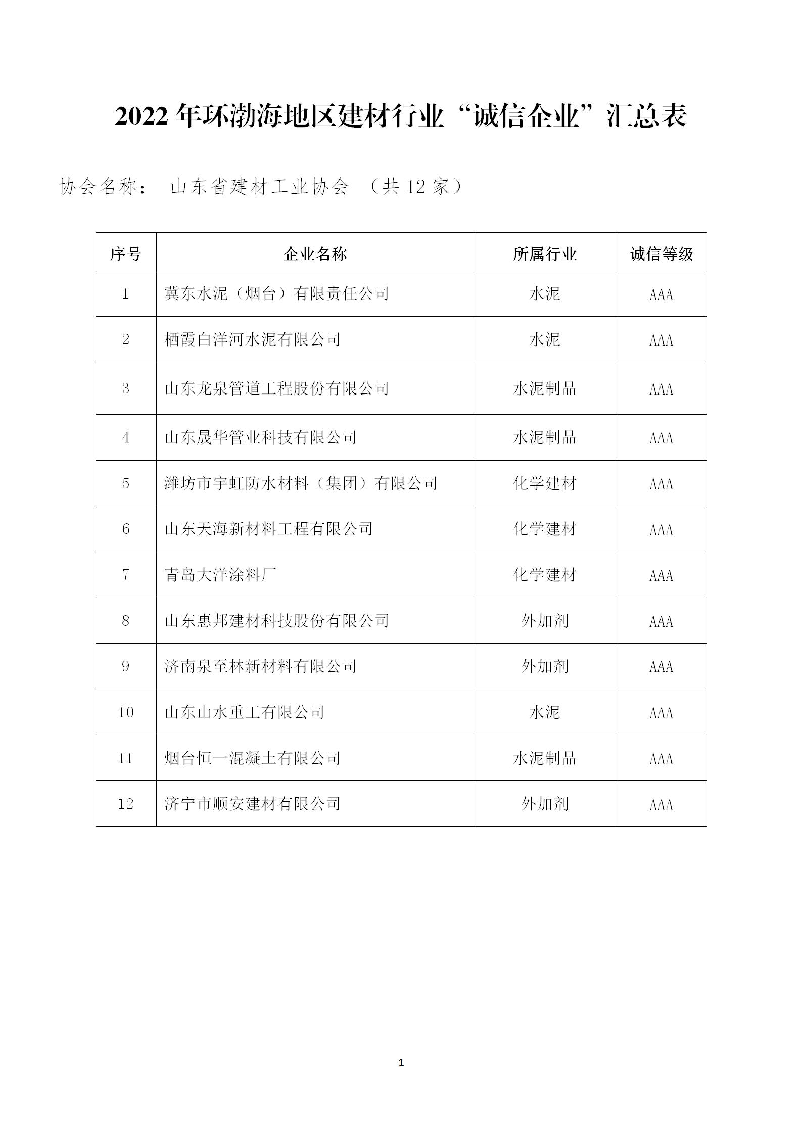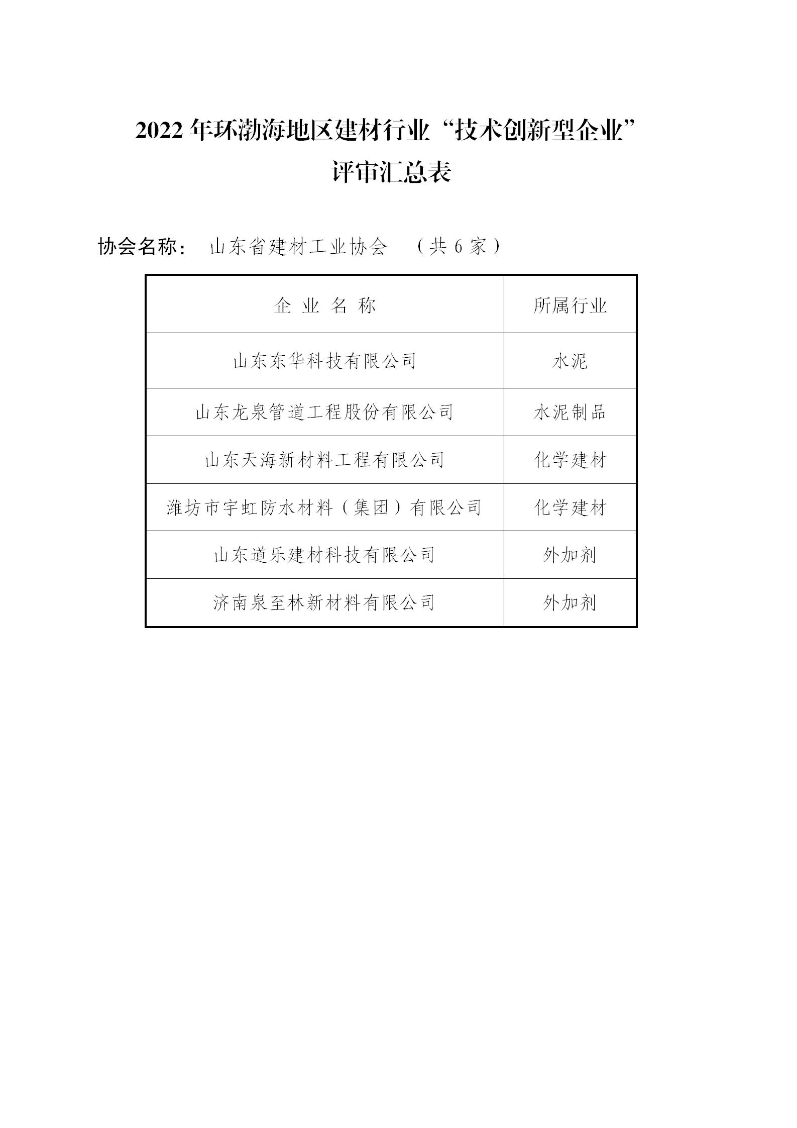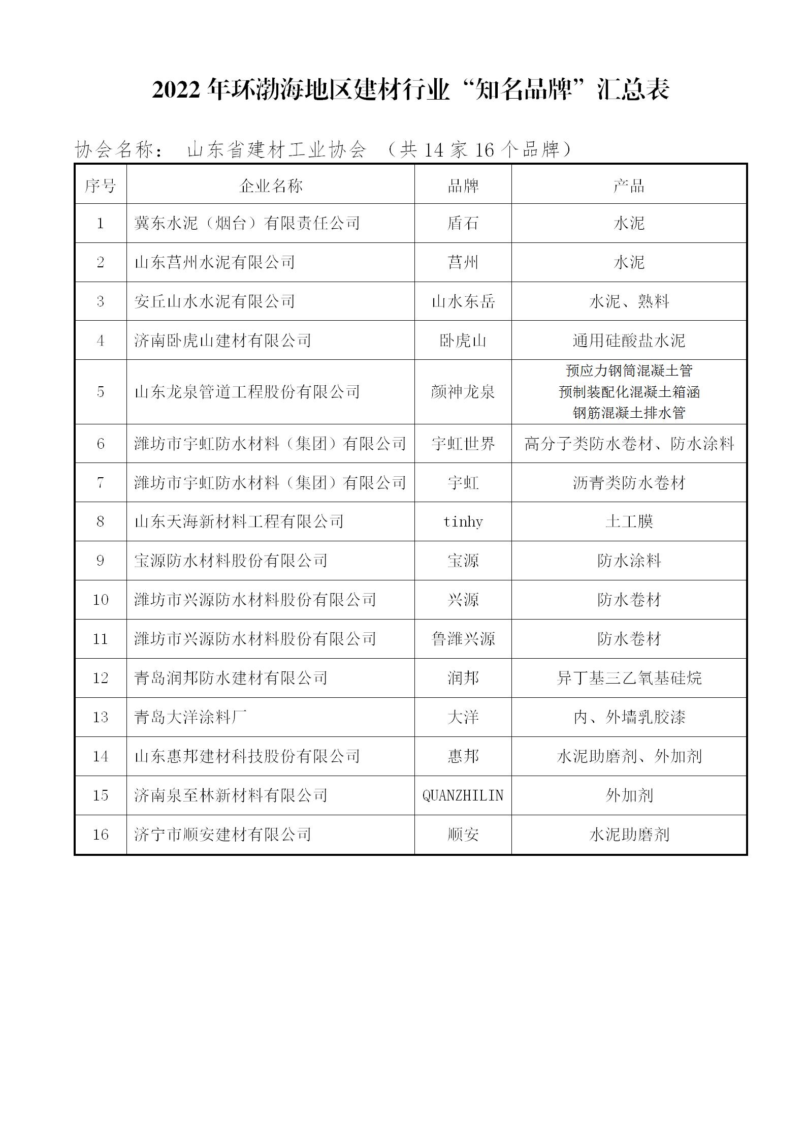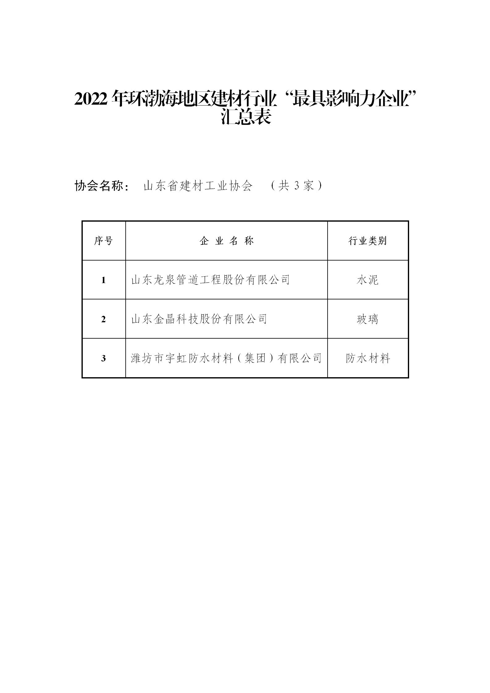 2022年环渤海地区建材行业“诚信企业”“知名品牌”“技术创新型企业”“最具影响力企业”(山东企业)名单公示