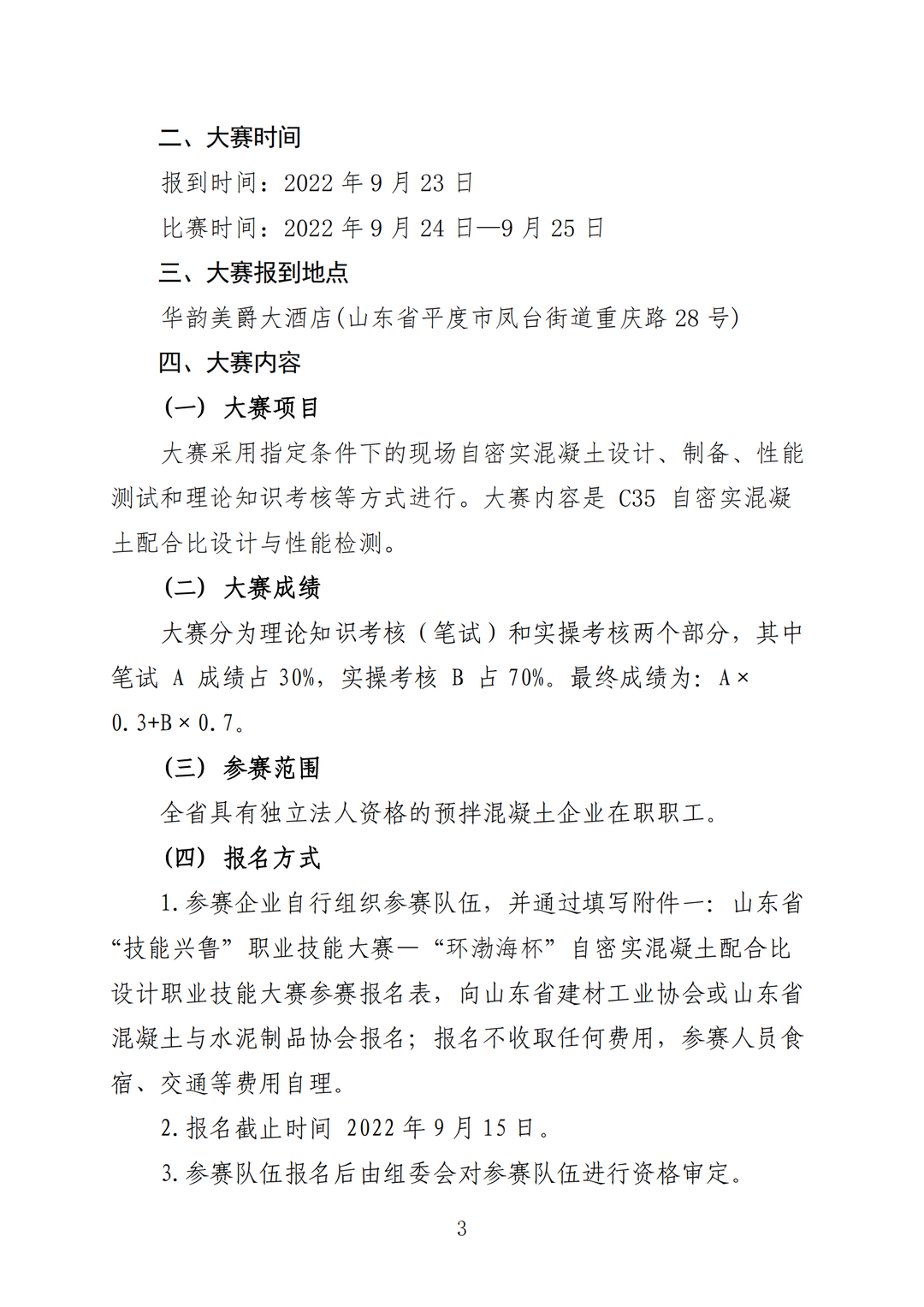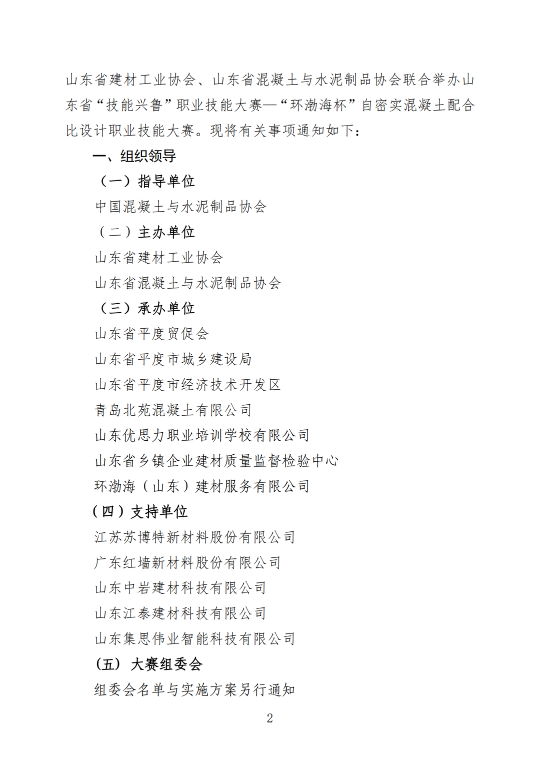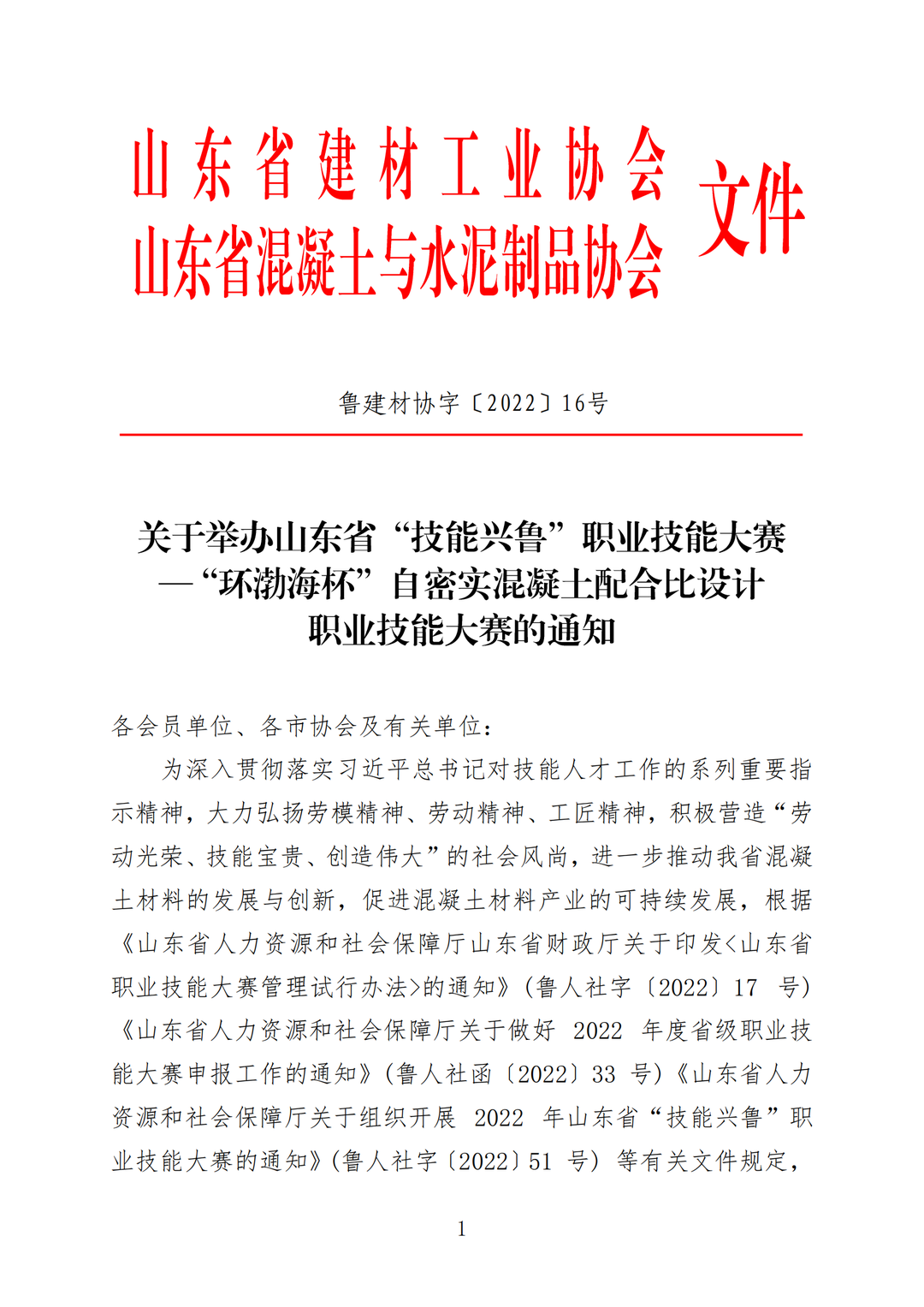 关于举办山东省“技能兴鲁”职业技能大赛—“环渤海杯”自密实混凝土配合比设计职业技能大赛的通知