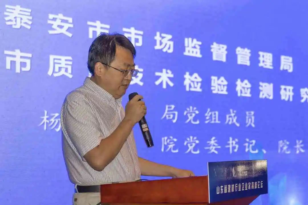 山东省建材工业协会会长靳志刚,泰安市市场监督管理局党组成员、泰安市质量技术检验检测研究院党委书记、院长杨树国分别为论坛致辞。