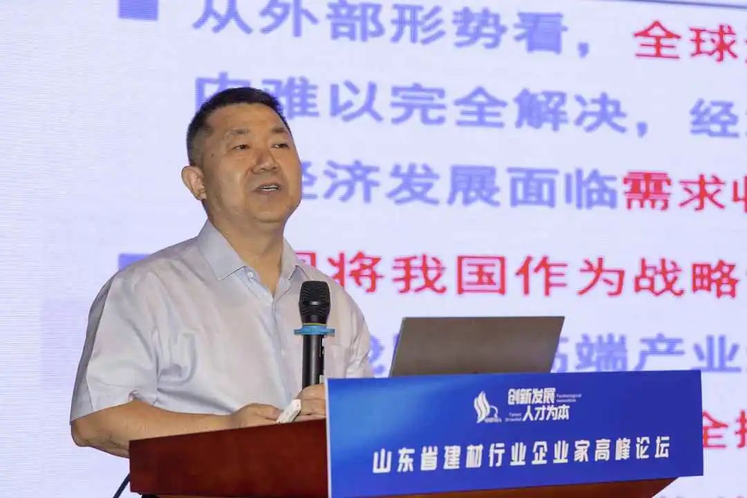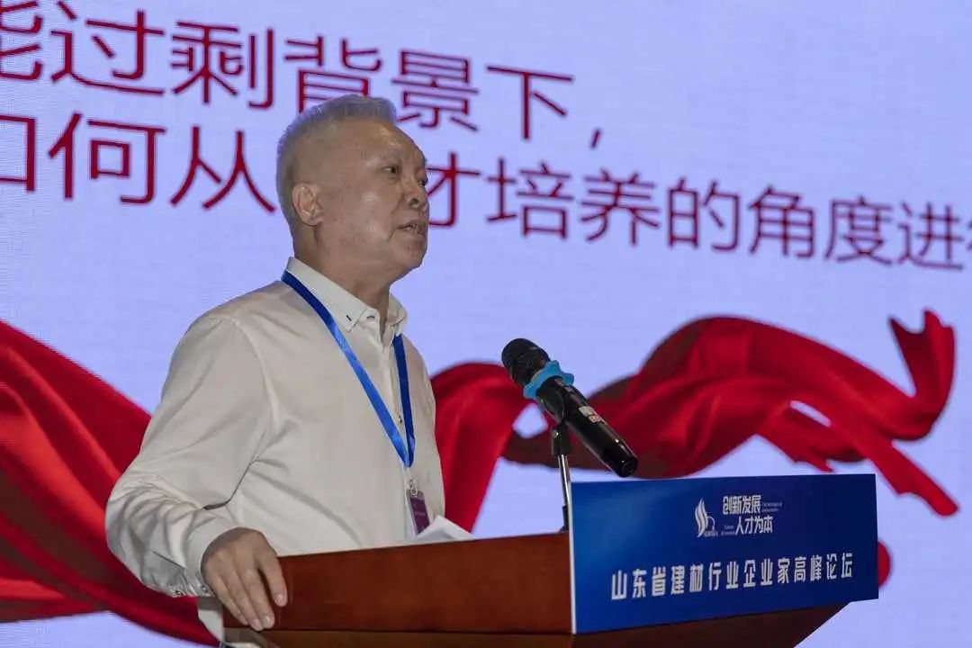 中国水泥协会副会长、山东省建材工业协会副会长、山水集团领导宓敬田做了《产能过剩背景下,企业如何从人才培养角度破局》的演讲,从当前经济形势、行业发展现状、国家政策角度等方面,深入浅出的阐述了传统建材行业在进行新旧动能转换,完成转型升级,实现低碳、绿色、高质量发展的破局思路。他还根据自己从事管理工作44年来的经验和认识,论述了企业家在任何形势下应具备的基本素质,并强调了新形势下企业人才培养的重要性;