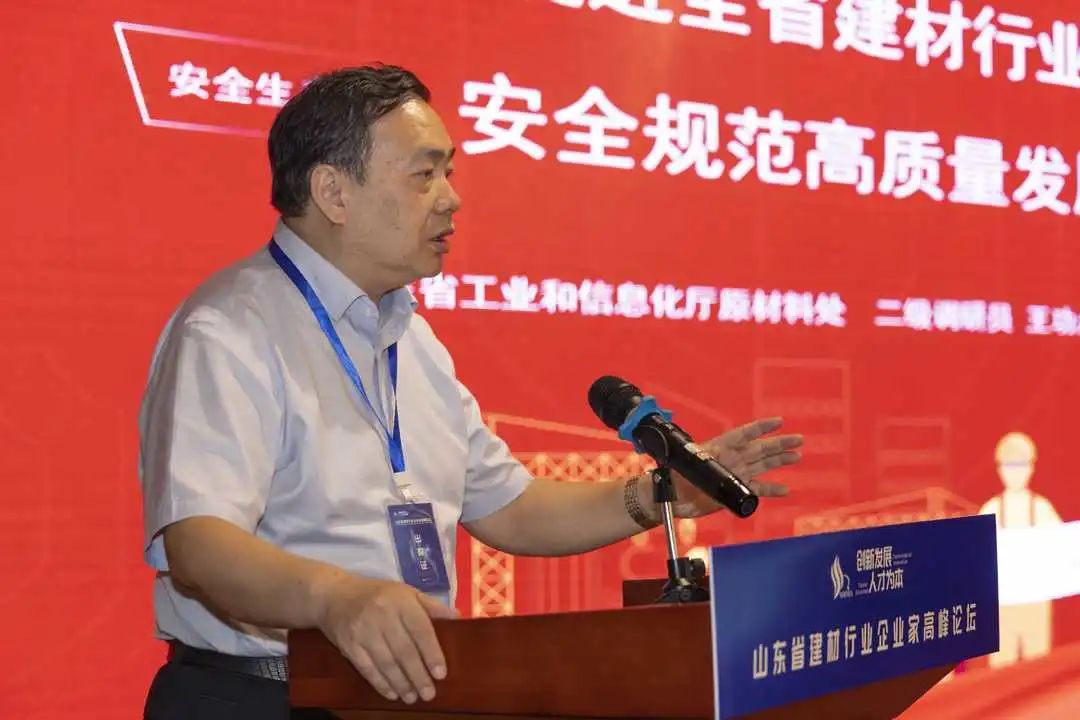 山东省工业和信息化厅原材料处二级调研员王功永做了《强化安全生产促进全省建材行业安全规范高质量发展》的主题讲话,要求建材行业生产企业强化底线思维,增强忧患意识,毫不动摇抓好安全生产工作,为建材工业高质量发展提供坚强保障;