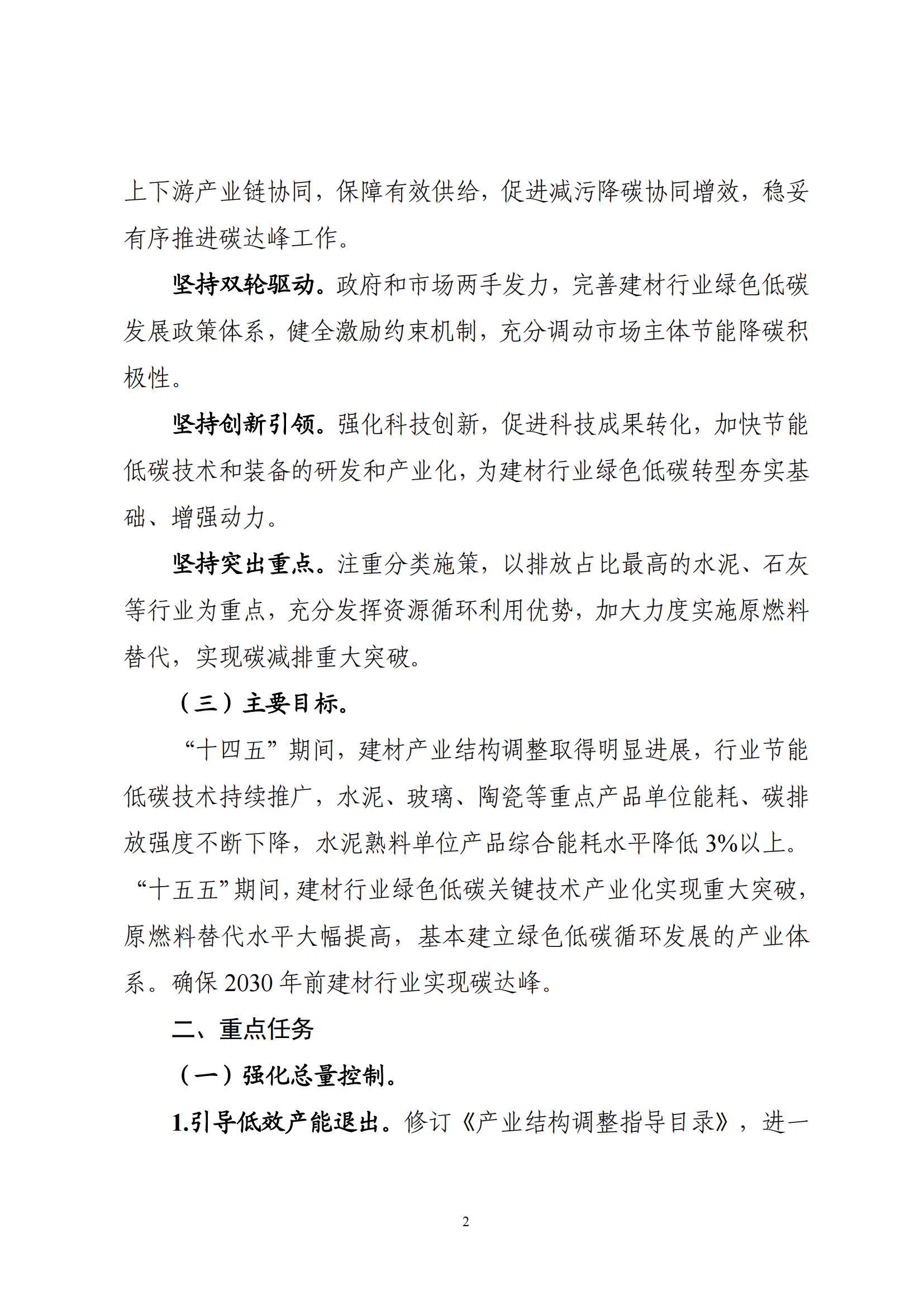 工业和信息化部 国家发展和改革委员会 生态环境部 住房和城乡建设部关于印发建材行业碳达峰实施方案的通知