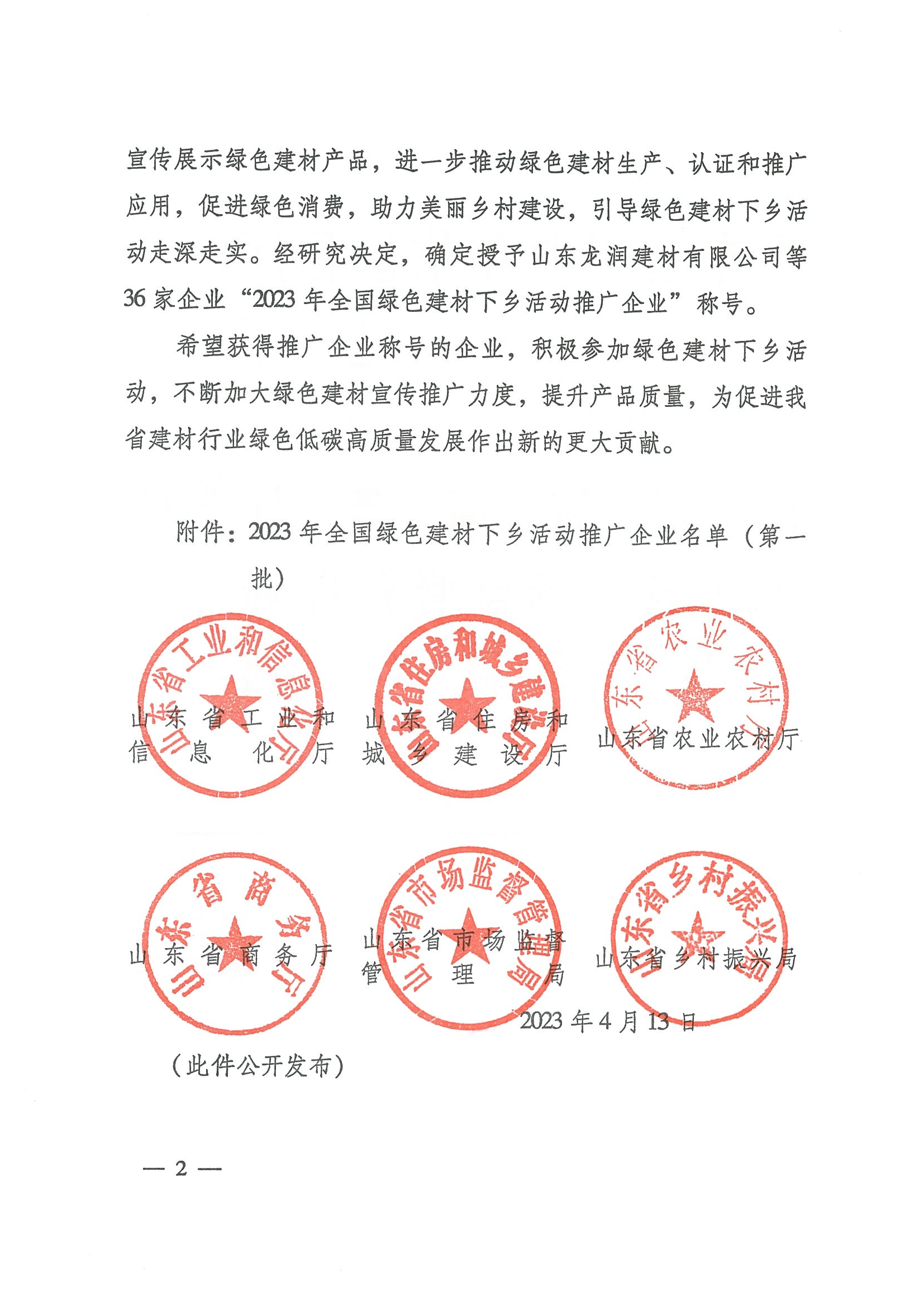 关于公布2023年全国绿色建材下乡活动推广企业名单(第一批)的通知