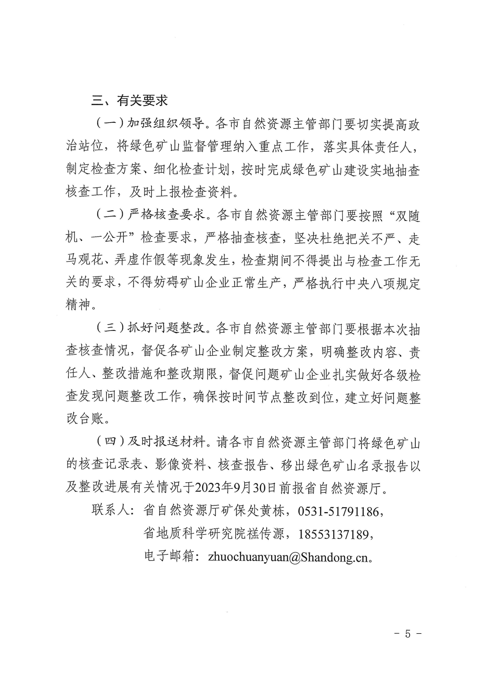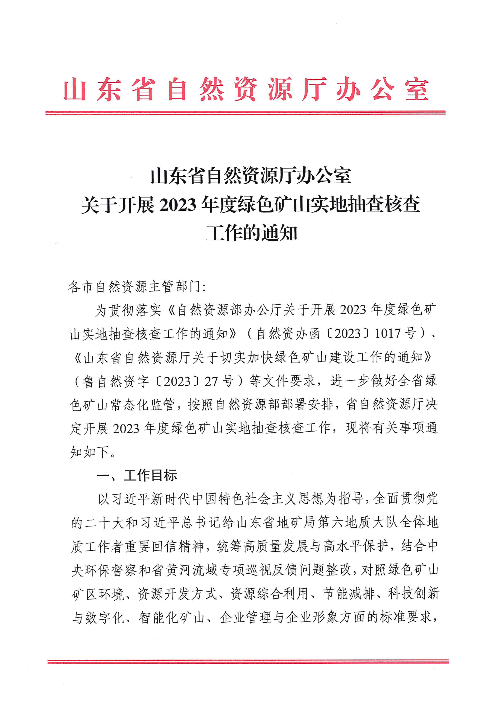 山东省自然资源厅办公室关于开展2023年度绿色矿山实地抽查核查工作的通知