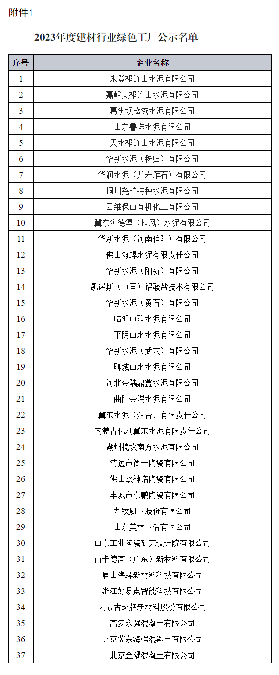 为贯彻落实《“十四五”工业绿色发展规划》,强化绿色制造标杆引领作用,按照中国建筑材料联合会《关于开展2023年度建材行业绿色制造标杆名单遴选的通知》要求,经第三方评价、行业专家评审,现对拟入选的2023年度建材行业绿色制造标杆名单予以公示。
