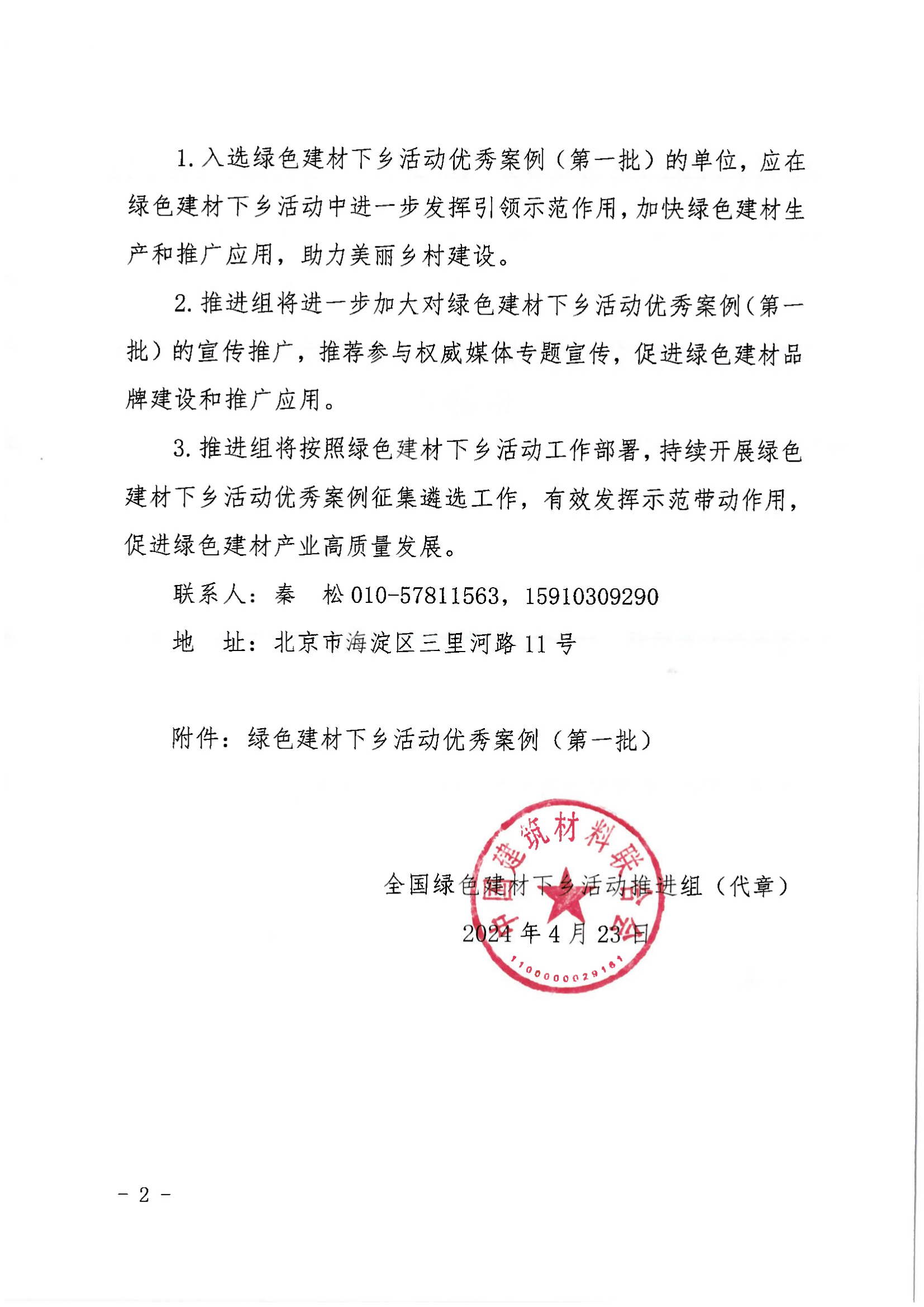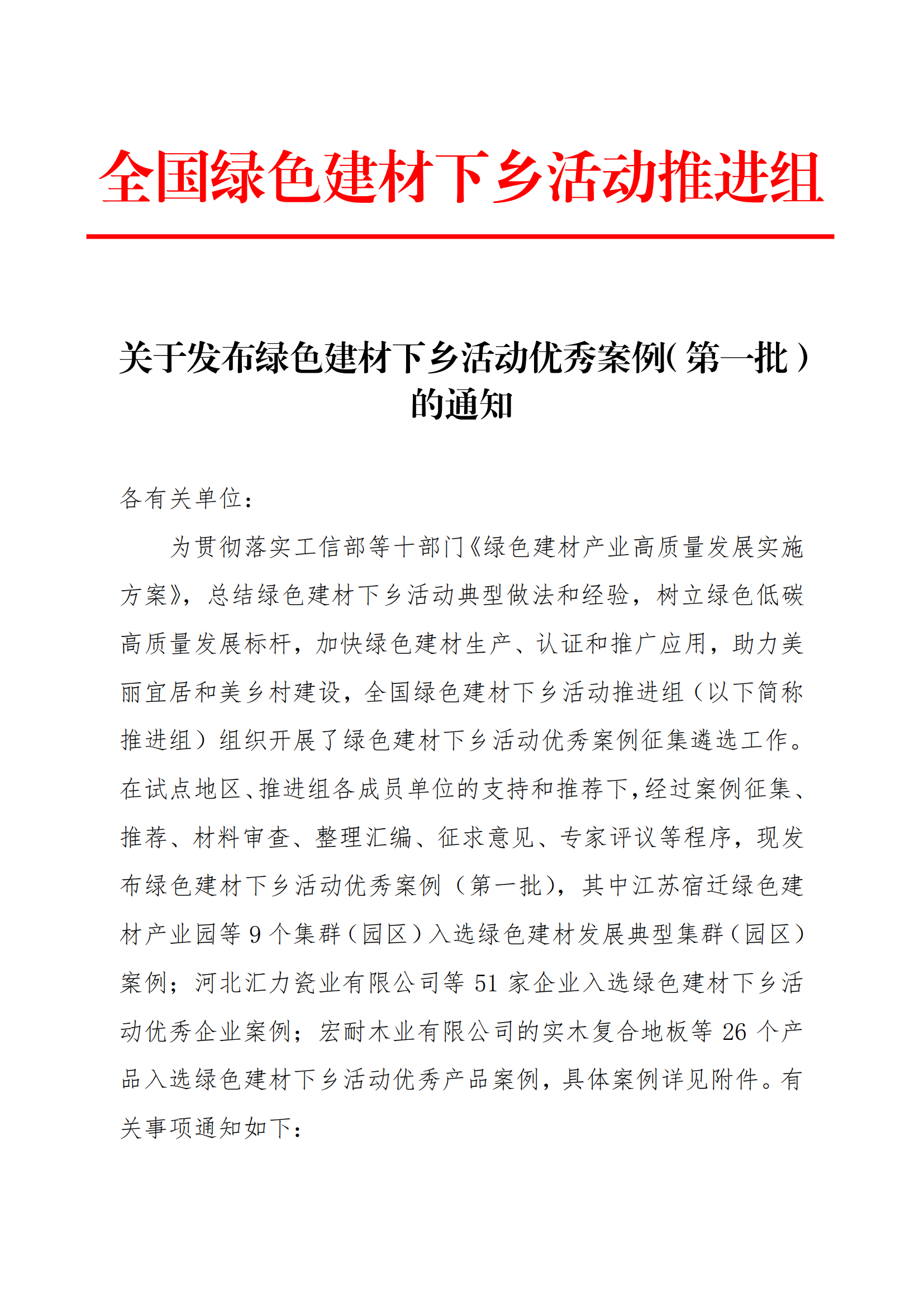山东省4个集群(园区)、2家企业、1个产品入选绿色建材下乡活动优秀案例(第一批)