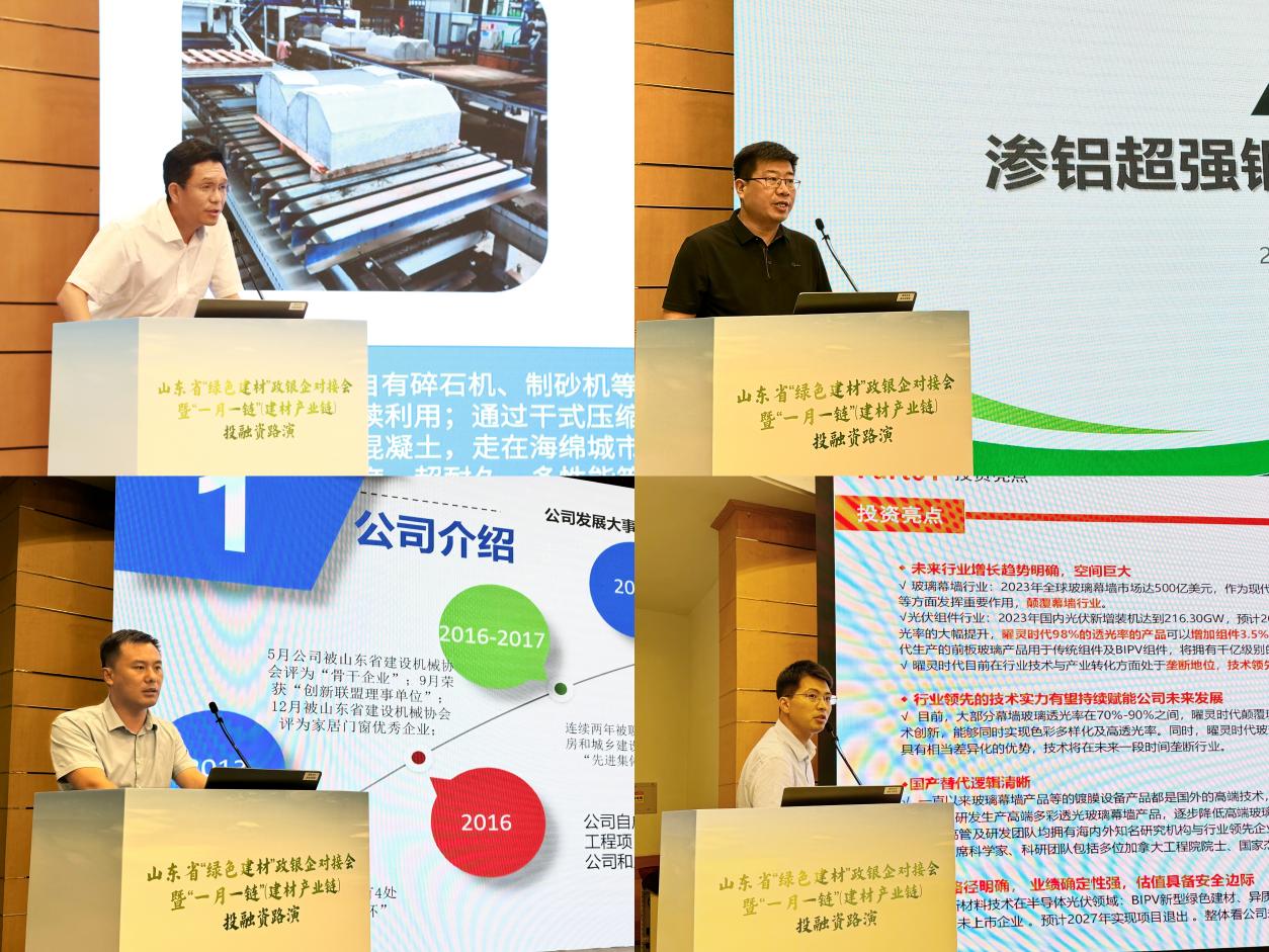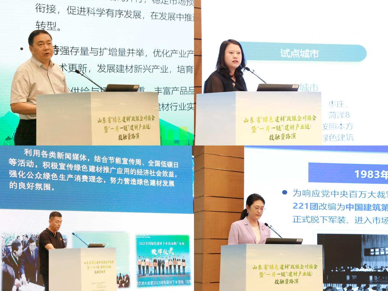 济宁金虹装配式建筑科技有限公司、凯盛晶华玻璃有限公司、山东冠县美安复合材料有限公司、山东泓昊建材科技有限公司、曜灵时代(山东)新能源科技发展有限公司等5家优质“绿色建材”企业进行了现场路演展示。