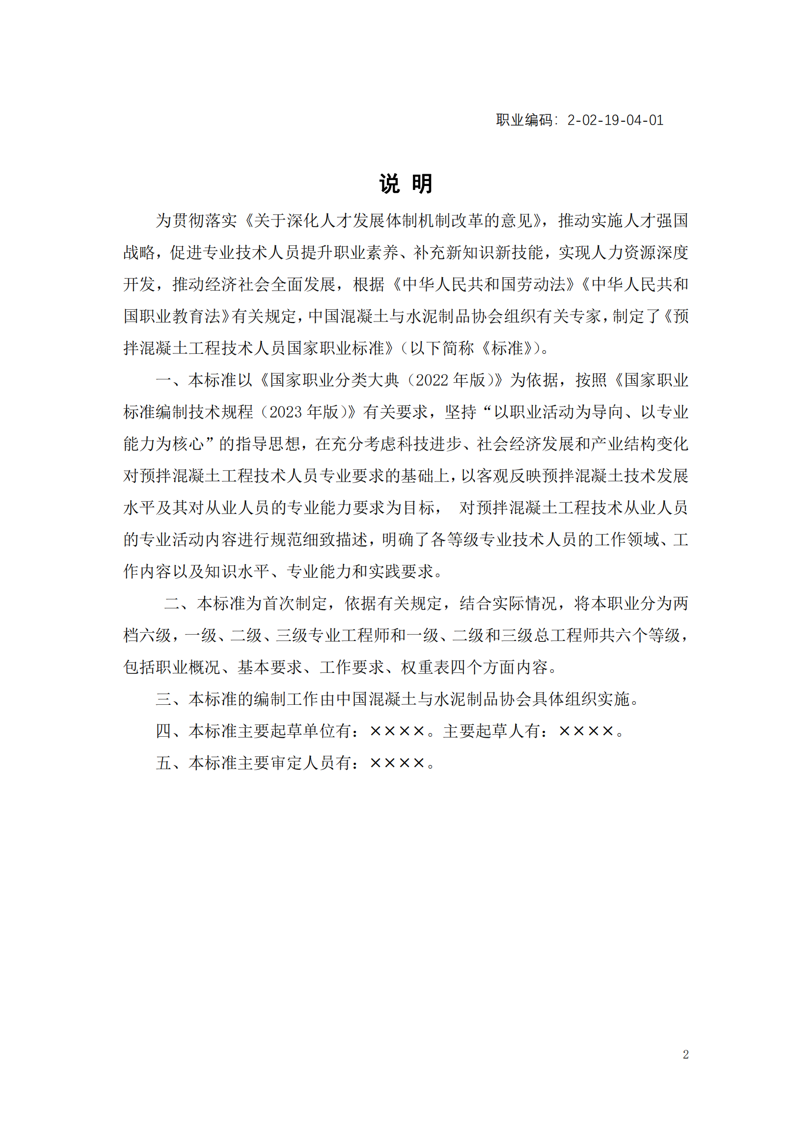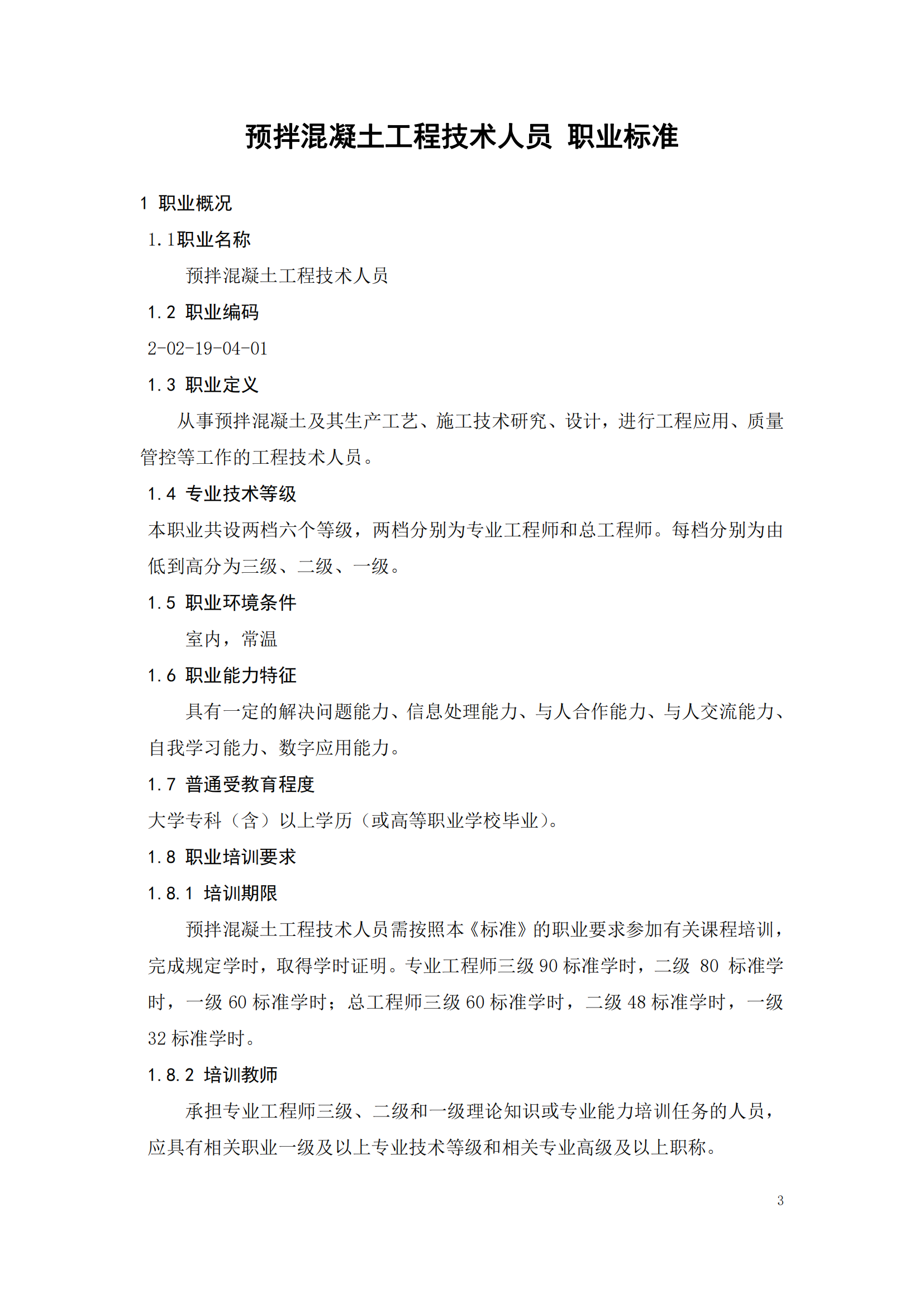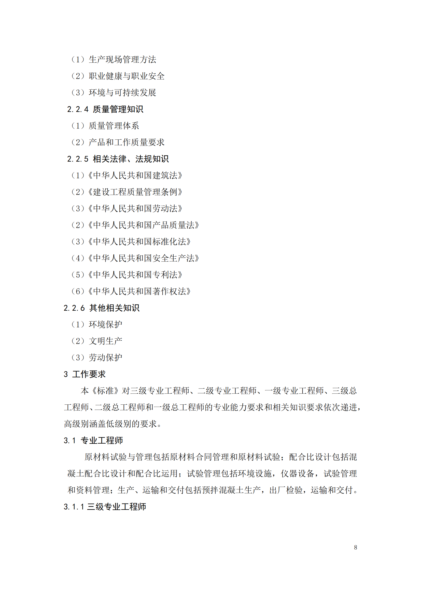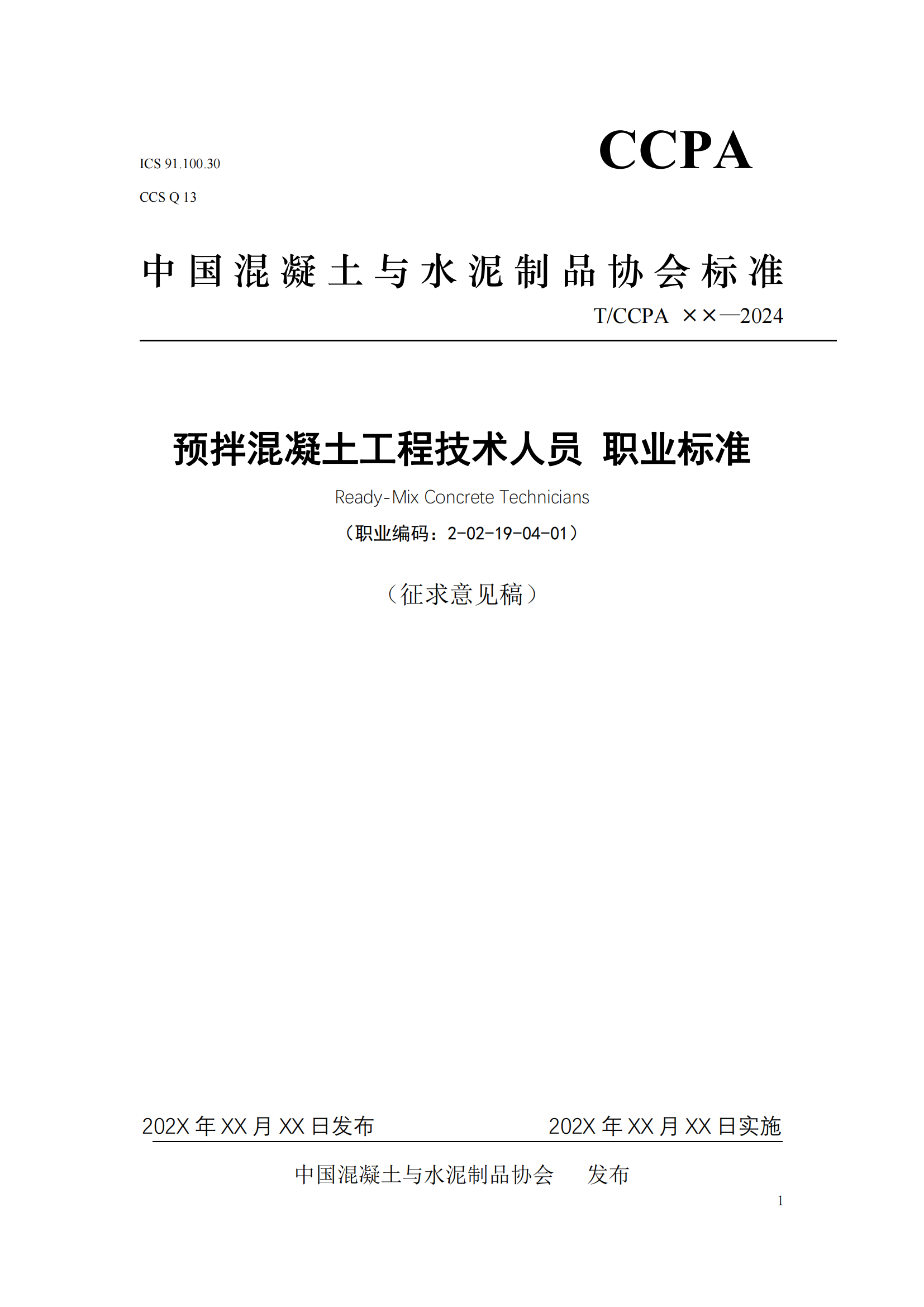 关于征集《预拌混凝土工程技术人员 职业标准》征求意见稿