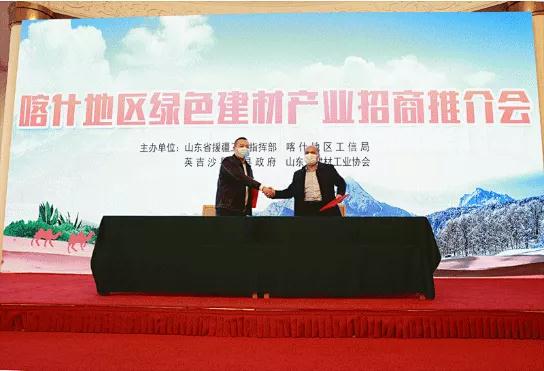 10月29日上午,由山东省援疆工作指挥部、喀什地区工信局、英吉沙县委县政府、山东省建材工业协会主办的喀什地区绿色建材产业招商推介会在济南南郊宾馆召开。
