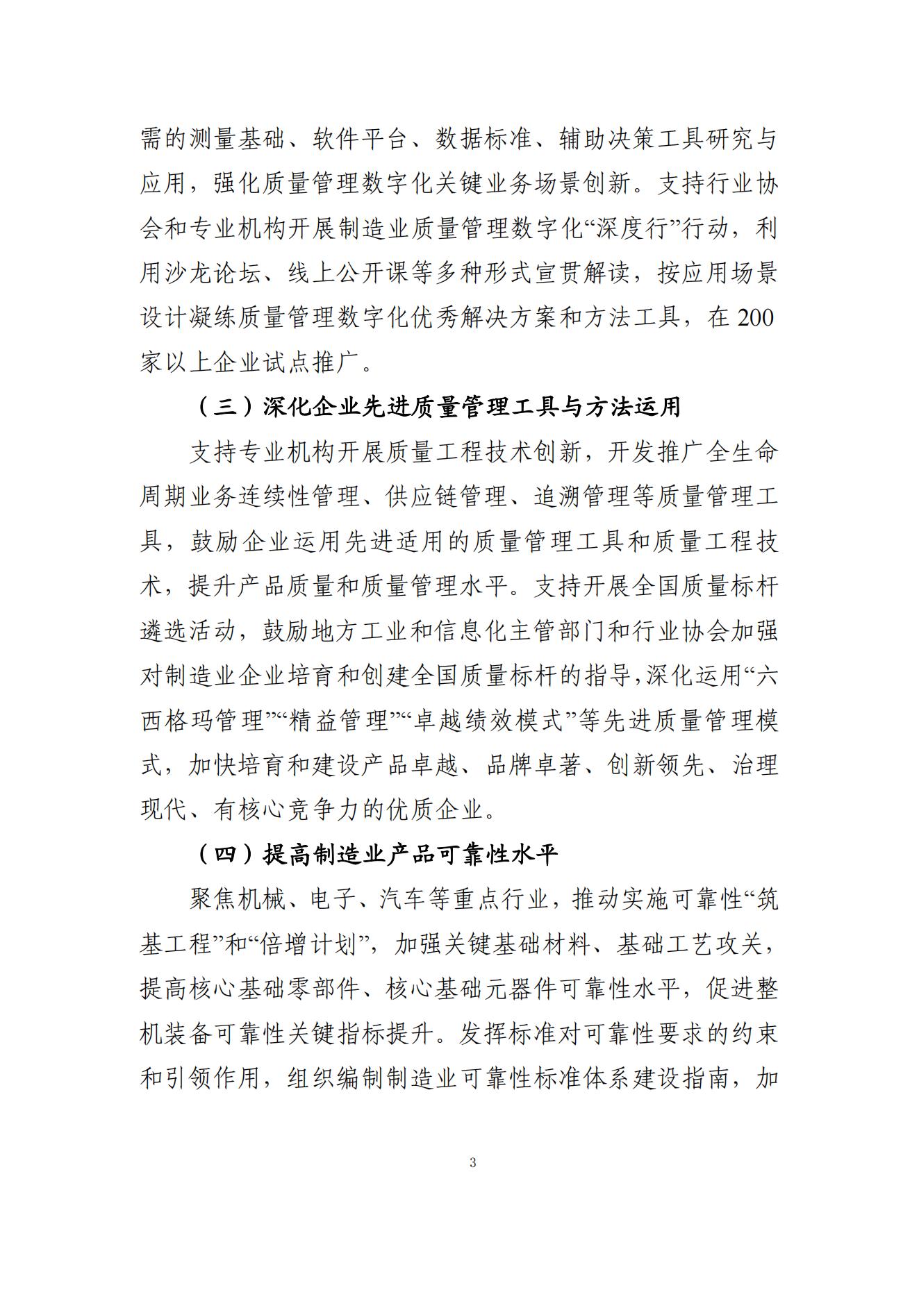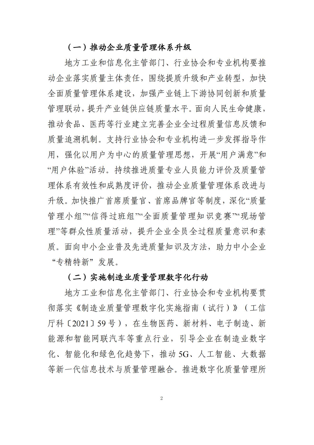 为贯彻中央经济工作会议精神,落实《政府工作报告》和全国工业和信息化工作会议任务部署,推动行业质量技术创新和管理进步,促进制造业高质量发展,工业和信息化部办公厅近日发出通知,部署了推动企业质量管理体系升级、实施制造业质量管理数字化行动、深化企业先进质量管理工具与方法运用、提高制造业产品可靠性水平、提升制造业关键过程质量控制能力、提高质量公共服务效能、推动重点行业质量提升、加快推进工业品牌培育、持续提升“中国制造”品牌形象等九个方面的重点任务。