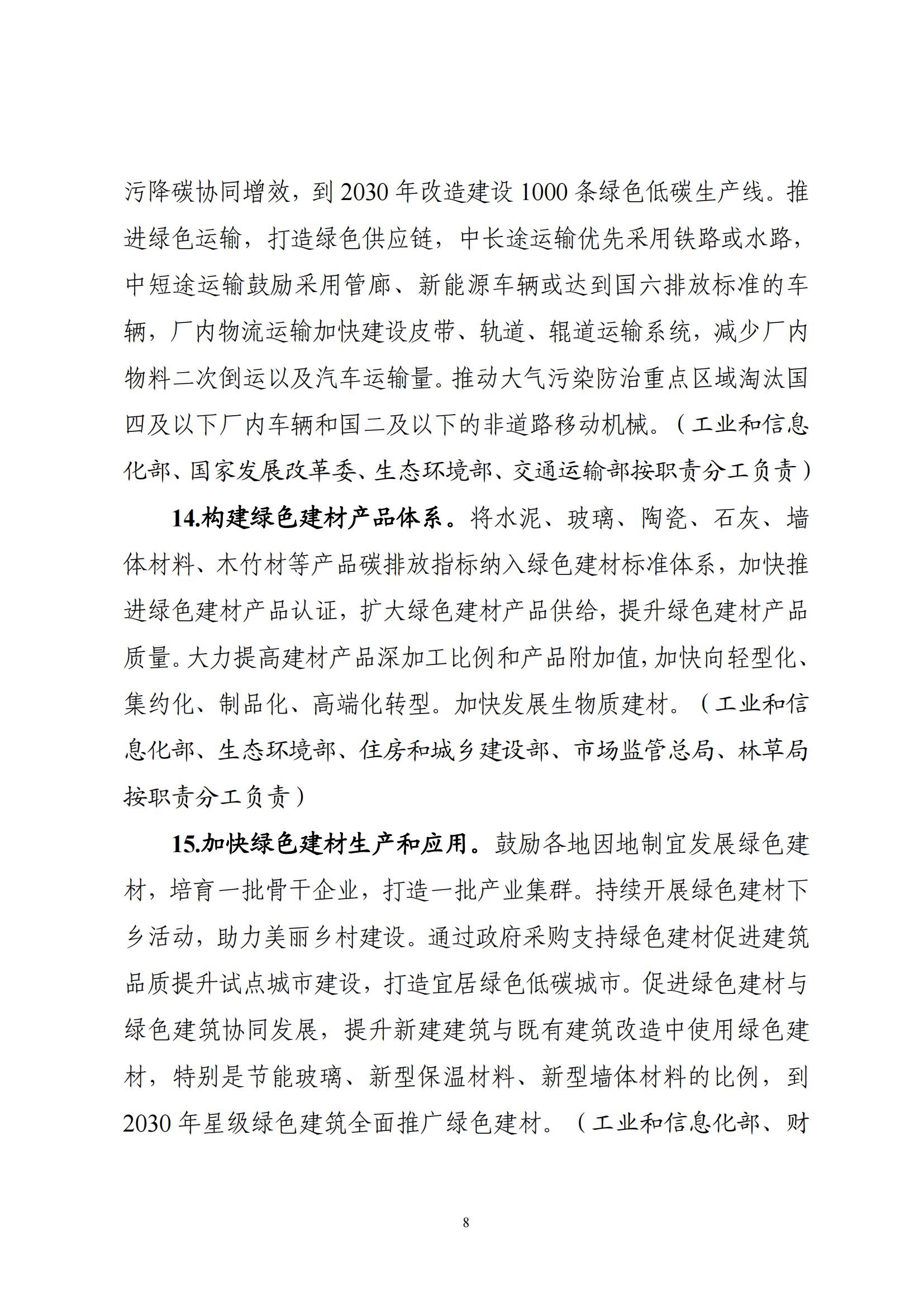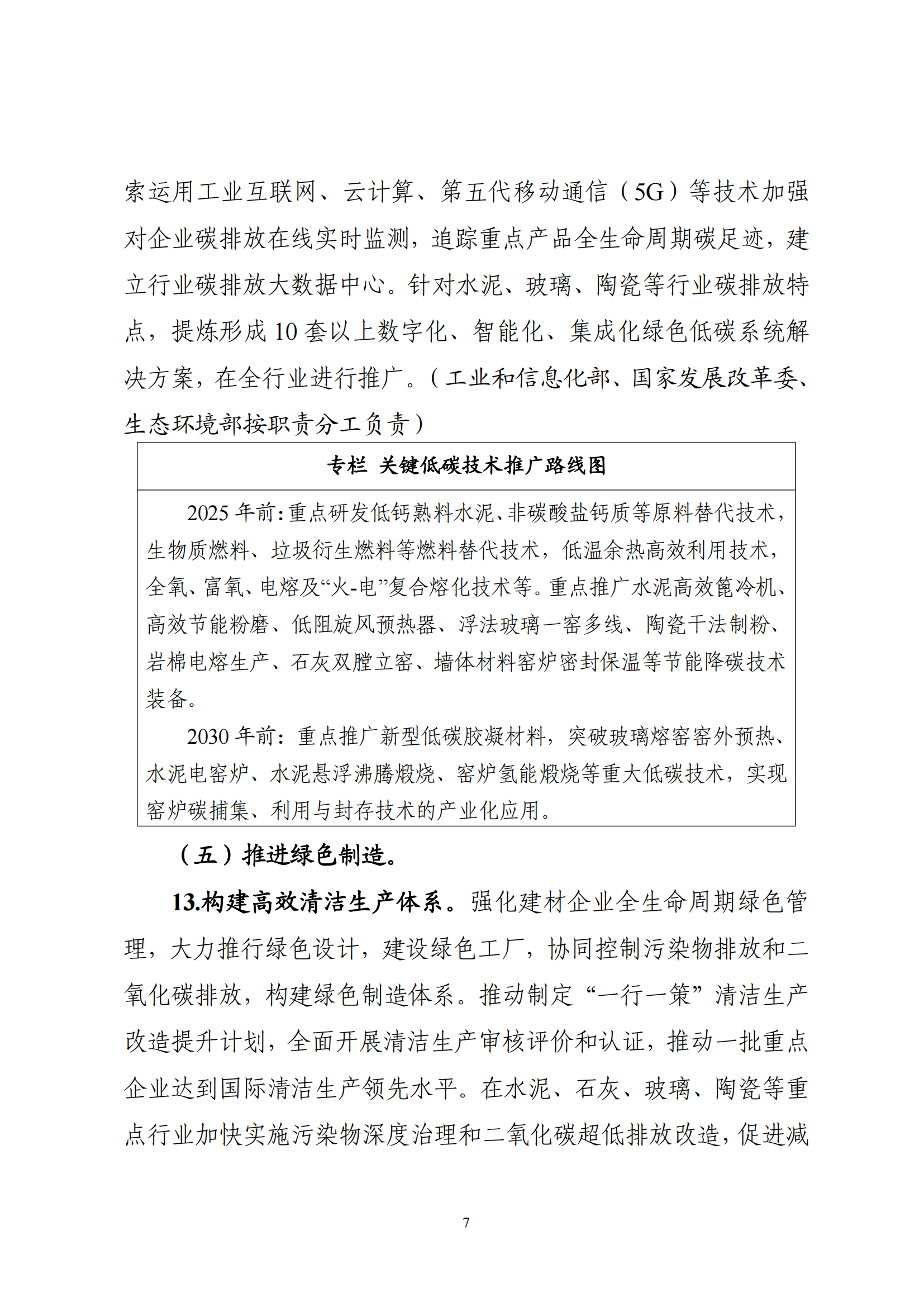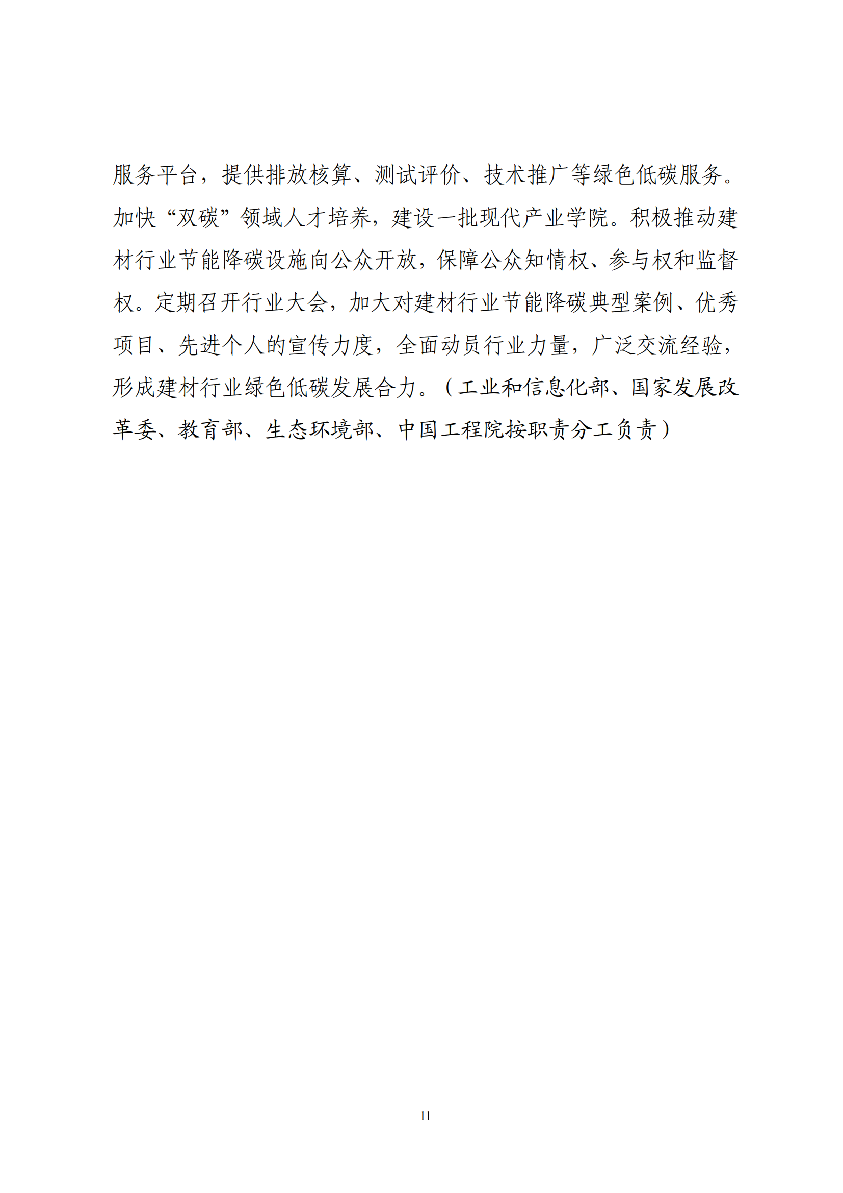 工业和信息化部 国家发展和改革委员会 生态环境部 住房和城乡建设部关于印发建材行业碳达峰实施方案的通知