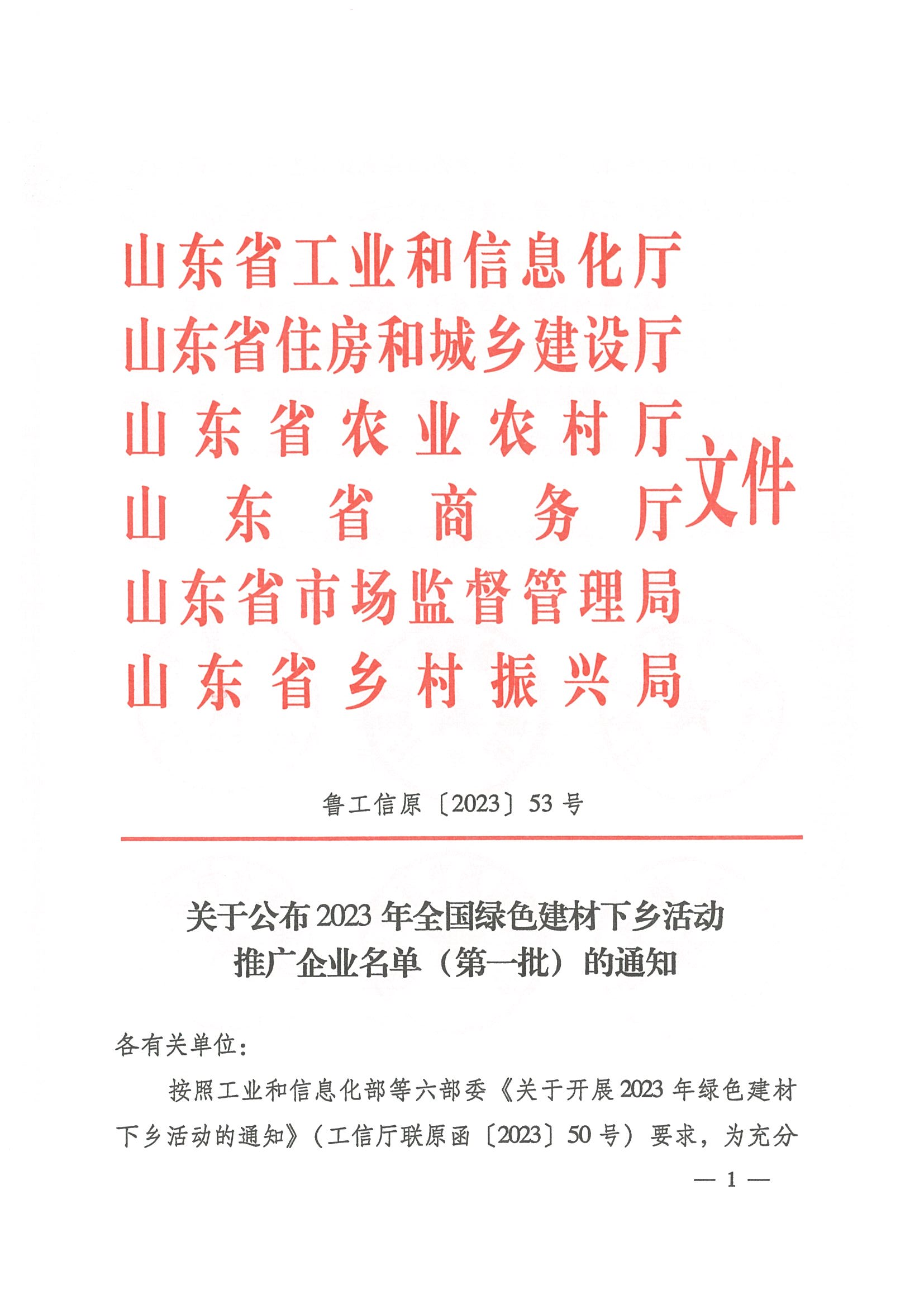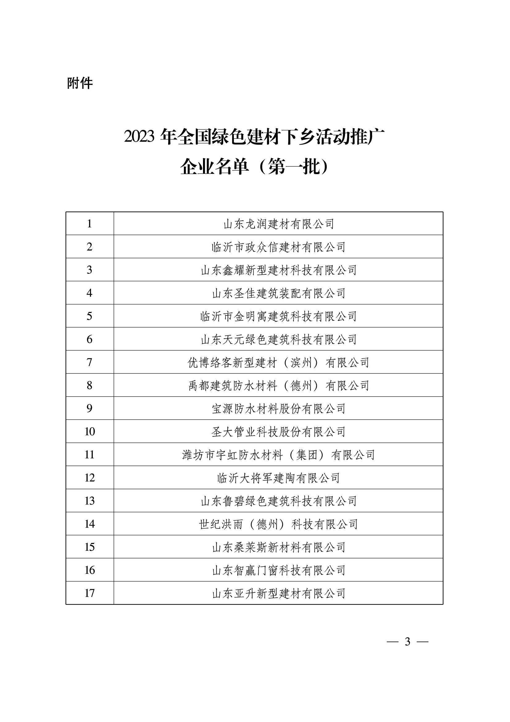 关于公布2023年全国绿色建材下乡活动推广企业名单(第一批)的通知