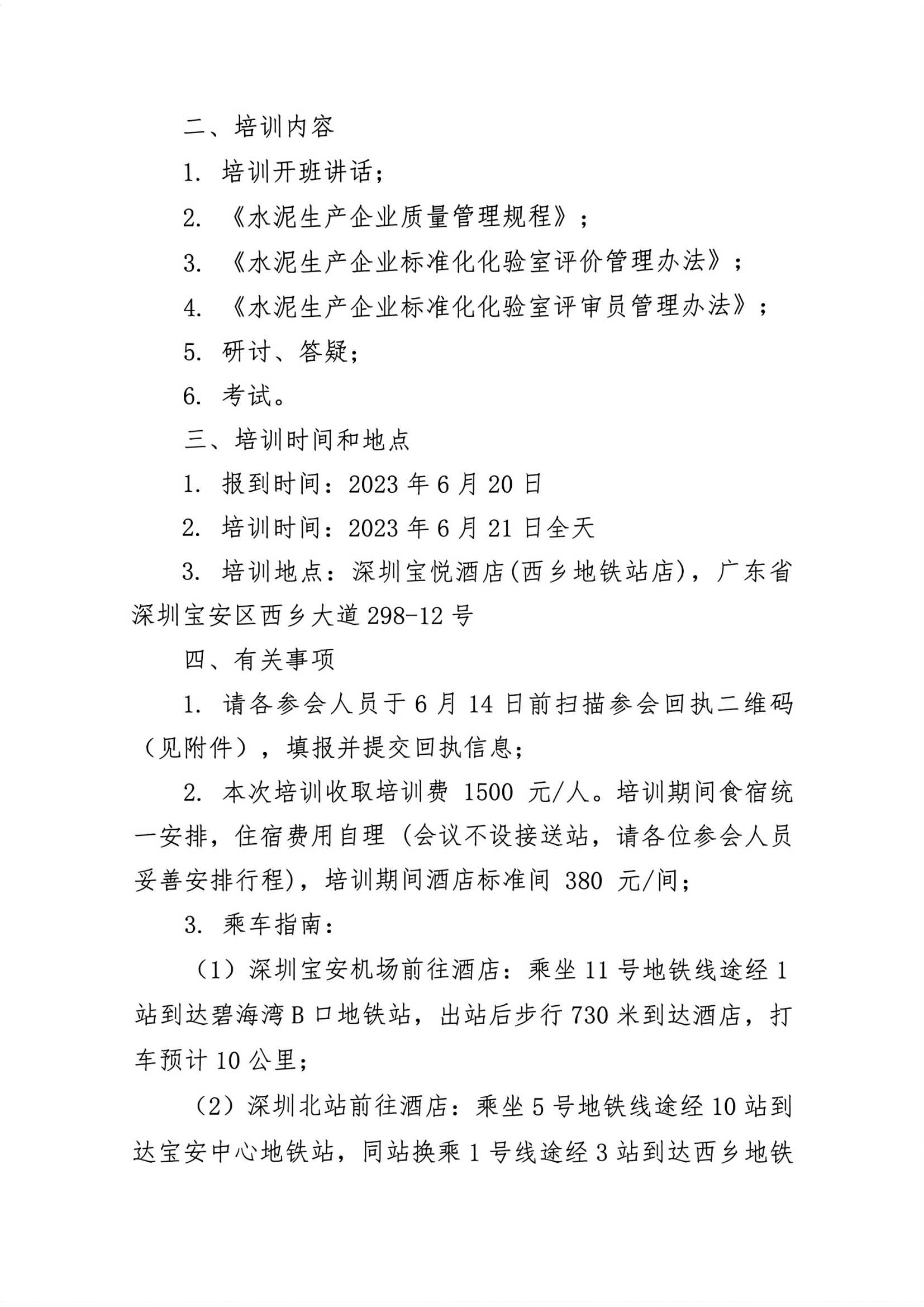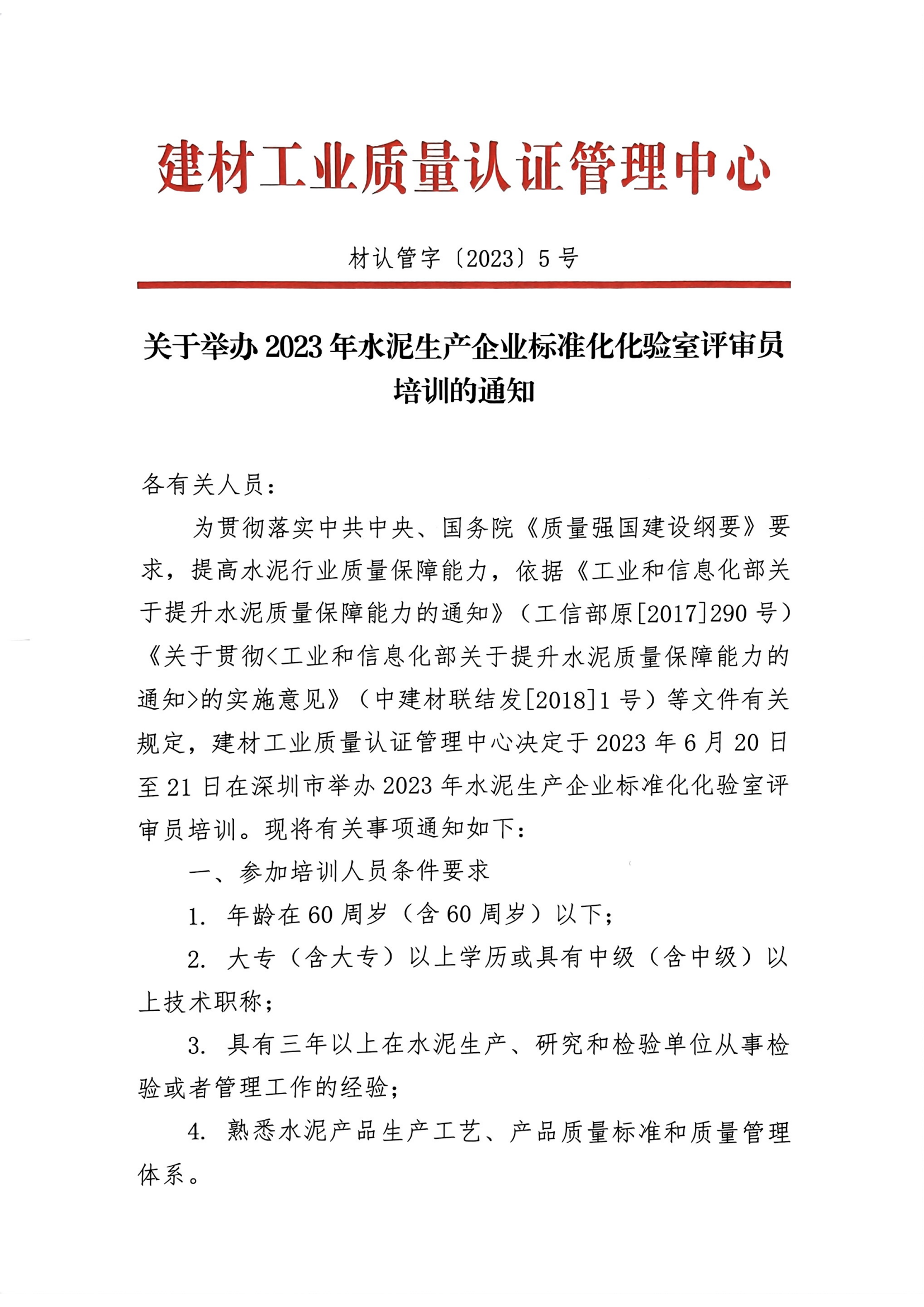 建材工业质量认证管理中心关于举办2023 年水泥生产企业标准化化验室评审员培训的通知