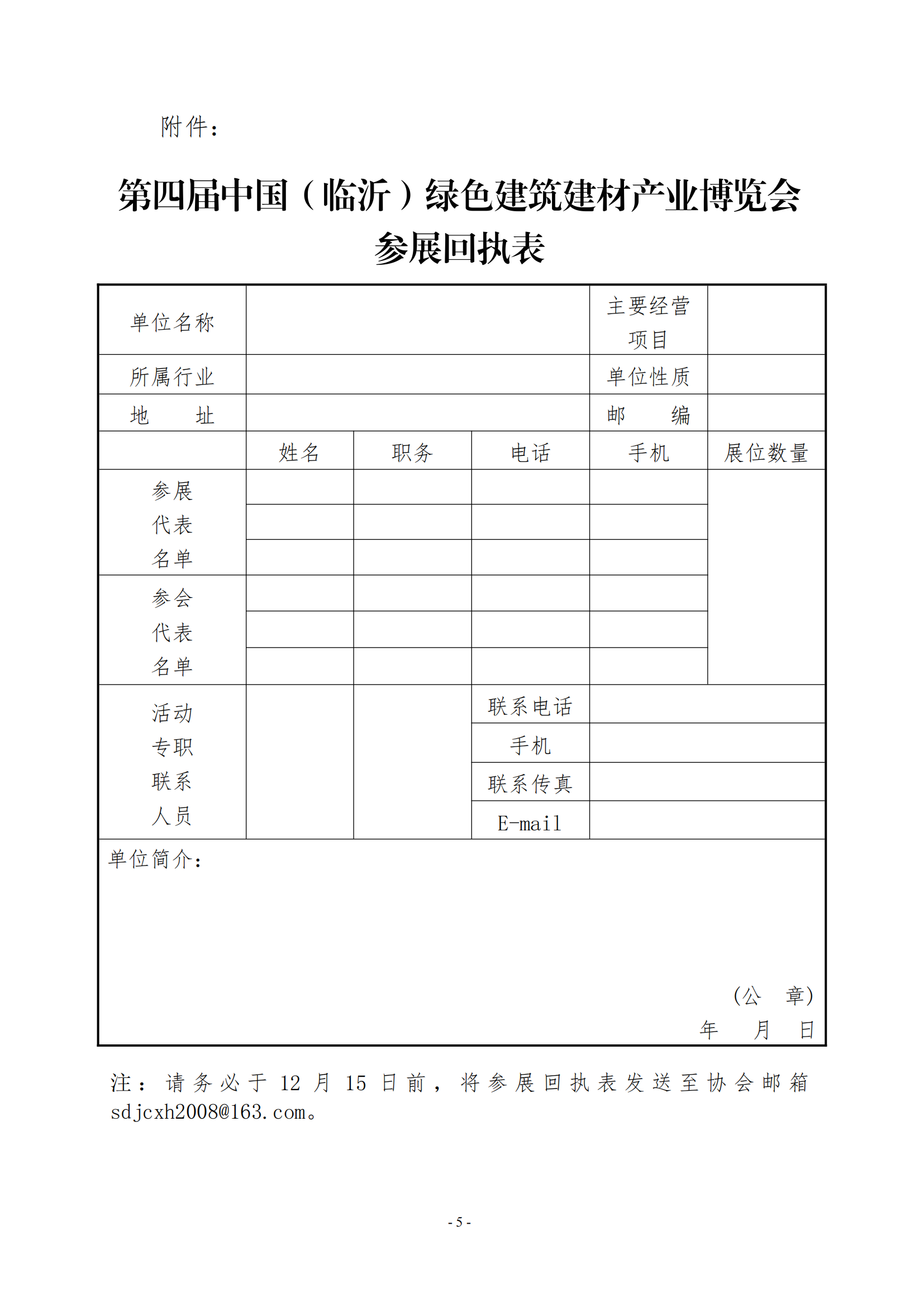 附件:第四届中国(临沂)绿色建筑建材产业博览会参展回执表