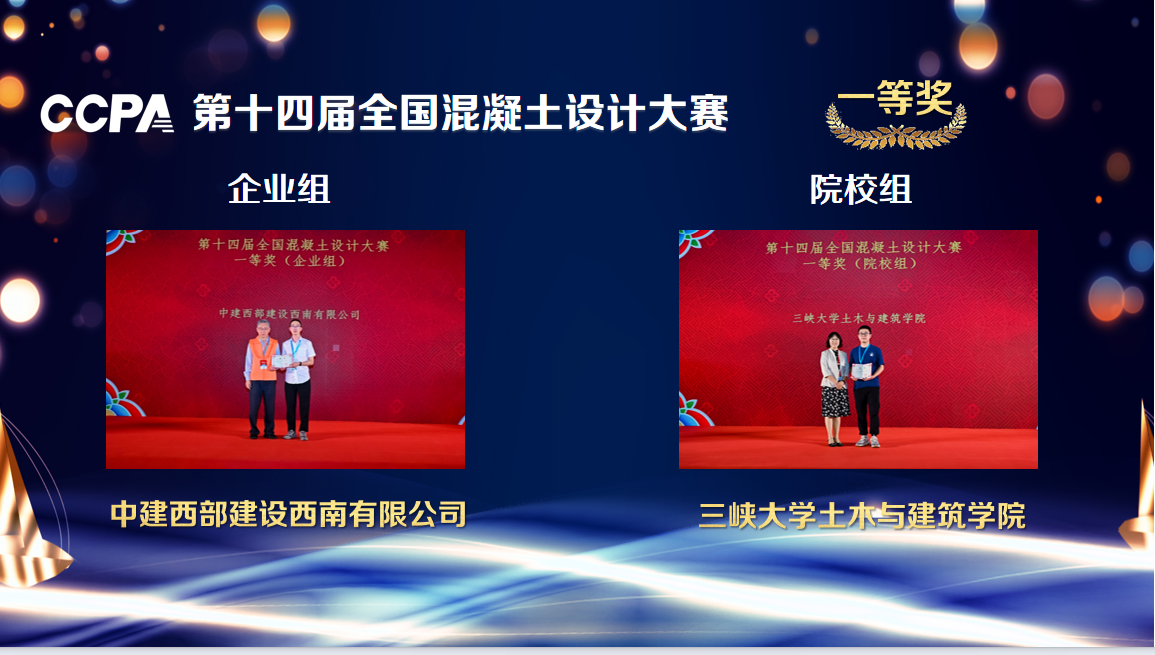 大会为第十四届全国混凝土设计大赛企业组一等奖和院校组一等奖获奖队伍、第三届“科尼乐杯”全国UHPC设计定制大赛企业组一等奖和院校组一等奖获奖队伍、第二届“科尼乐杯”全国混凝土外加剂应用技术大赛——外加剂降粘与适应性大赛一等奖获奖队伍及“建华建材杯”第三届全国生态混凝土创新设计应用大赛企业组一等奖获奖队伍颁奖。