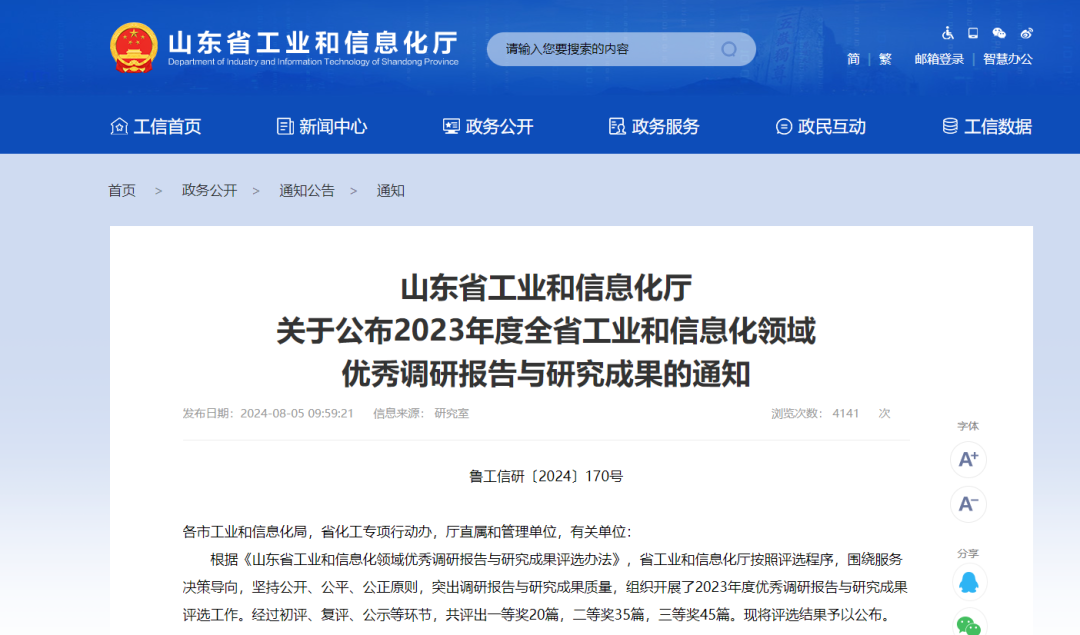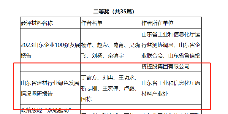 喜报 | 山东省建材工业协会荣获“2023年度山东省工业和信息化领域优秀调研报告与研究成果”二等奖
