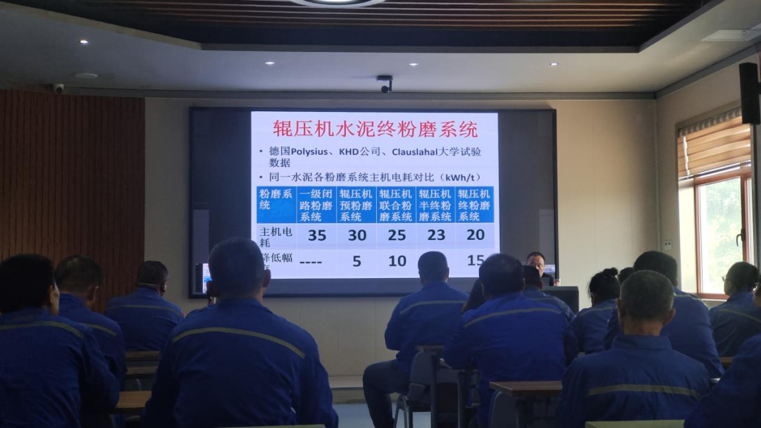 本次培训以“理论结合实践、创新赋能生产”为核心,围绕粉磨工艺中的关键环节展开系统讲解。理论教学中,戚秋爽深入解析了磨机提产优化、颗粒级配精准调控、滑履与磨片调节等技术要点,结合国内外先进案例,阐明设备参数调整与生产效率提升的关联。针对辊压机液压系统等实际操作中的行业痛点,结合实际案例,通过示意图与视频演示的方式,直观展示了具体解决方案。